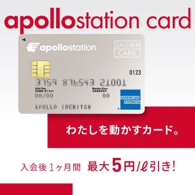 ■apollostationで給油の際に「apollostation card」をご利用頂くといつでもガソリン・軽油が2円/L値引き、灯油が1円/L値引き!