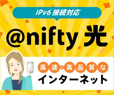 上り下り最大1Gbps、しかも次世代通信規格IPv6にも対応しているので、地域や時間帯の影響も少なくインターネットをご利用いただけます。『安心・安全のインターネットは、@nifty光』